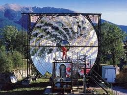 Erről jutott eszembe, hogy én jártam a világ és persze Franciaország első ( dupla visszatükrözős, vagy valami ilyesmi)naperőművében, a Pireneusokban. Azóta tudom a naperőmű francia nevét: le four solaire Az erőmű 1949-ben készült el Mont-Louis-ban. Ez a hely duplán nevezetes, mert nem csak erről a naperőműről híres, hanem az erődről is, mely a Vauban-i erődrenszer egyik tagja. Ráadásul az erőmű az 1600 m magasan elhelyezkedő citadella egy részén létesült Mellesleg ez Franciaország legmagasabban fekvő erődítménye. Az erőd katonai terület, de a honvédség befogadta az erőművet a területre egy napenergiát kutató laboratóriummal együtt.